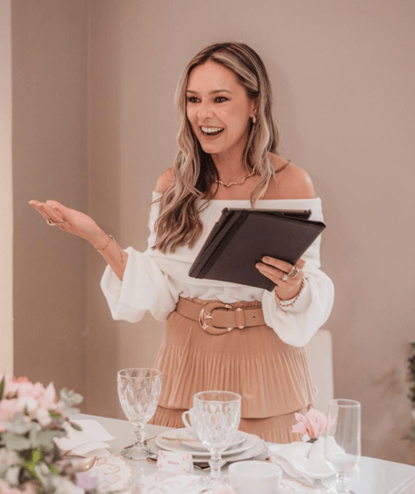 Dedica-se intencionalmente na administração do seu lar e é conhecida por suas mesas postas, que trazem beleza e ordem aos momentos à mesa, mas sobretudo transmite o princípio: